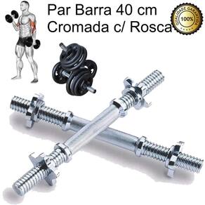 Barra Halter 40Cm Maciça Cromada Com Rosca Par
