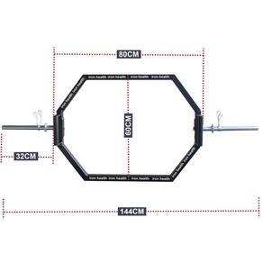Barra Hexagonal Agachamento Livre A Barra Hexagonal Iron Health tem a finalidade da execução do agachamento Livre para treino de pernas. O equipamento acompanha presilhas para anilhas convencionais e tem capacidade para 100kg. Especificações do equipamento:Peso do produto: aproximadamente 6kg;Estrutura: Aço Carbono;Pintura Eletrostática a pó suporte de anilha galvanizado ;Dimensão do produto montado: 144cm de comprimento e 60cm de largura. IMPORTANTE: O produto é apenas o equipamento, não acompanha anilhas. Marca: Iron Health Equipamentos