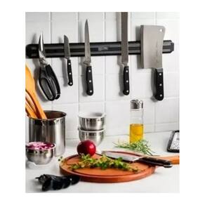 Barra magnetica ima para facas e ferramentas 50cm A barra magnética para facas e ferramentas é um dispositivo prático e funcional para organizar e armazenar utensílios de corte e ferramentas de metal. Com um comprimento aproximado de 50cm, esta barra é ideal para montagem em cozinhas, oficinas ou áreas de trabalho onde seja necessário acesso rápido e seguro a facas, tesouras, chaves de fenda e outros itens metálicos. Sua cor preta confere um visual discreto e elegante, adequando-se a uma variedade de ambientes. Fabricada com materiais de alta qualidade, como metal e ímã, esta barra oferece uma forte aderência para manter seus objetos firmemente no lugar, reduzindo o risco de acidentes e mantendo sua área de trabalho organizada. Além de proporcionar praticidade, a barra magnética para facas e ferramentas também ajuda a economizar espaço, pois permite que você armazene seus utensílios de forma vertical, liberando espaço em bancadas e gavetas. Com sua composição durável e design funcional, este produto é uma excelente escolha para quem busca praticidade e organização em seu dia a dia. Marca: Não Informado Ean: 7908732305529