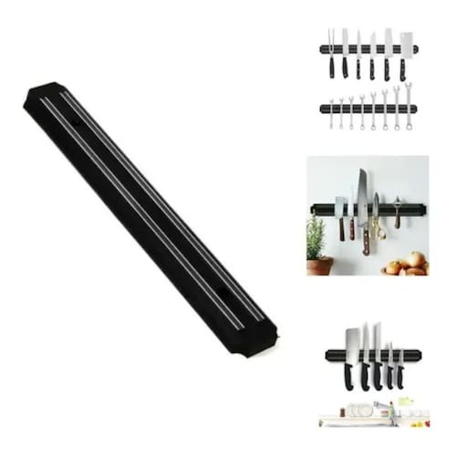 Olá, será um prazer atender seu pedido Somos uma empresa séria e nos preocupamos em todas as etapas do processo para que seu pedido chegue até você da maneira que você espera. Emitimos para pessoas fisicas e jurídicas. Informações do produto:- cor: preto- medida: 50 cm x 4,9 cm- medidas do furo: 8,5 cm considerando das extremidades da barra conforme imagem - resistente- material: plástico, imã e aço inox- fixação: parafuso e bucha inclusos com o produto contém:- 1 barra magnética com imã para facas e ferramentas- 1 par de parafusos e buchas Marca: Não Informado