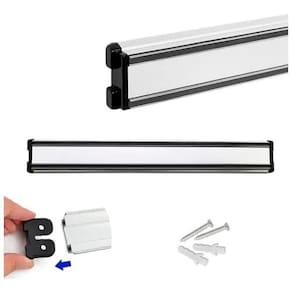 Essa Barra Magnética é indicada para guardar com muito mais estilo facas com lâminas de características ferro magnéticas. Exemplo: Aço inox, aço carbono. Fixe a barra a uma altura segura, longe do alcance de crianças. Procure o lugar mais apropriado e seguro para fixação lembre-se que não pode ser fixada em lugares que você possa bater com as mãos, ou mesmo encostar algo que possa derrubar as facas. Não acompanha Facas.