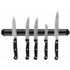 Barra magnética para pendurar utensílios metálicos como facas, ferramentas, etc. Dimensões 45 x 3 cm. Comprimento utilizável 39 cm. Não acompanha ferramentas. Fabricado em termoplástico resistente com imã poderoso. Acompanham 2 parafusos para fixação. Ean: 7897186020877