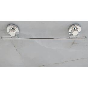 Garantia: 90 dias/ Peso: 320g / Cor predominante: cromado / Ref: 7898187747701 Medidas da Barra: 50cm (C) x 4cm (L) x 9cm (A); Diâmetro da ventosa: 7cm; Comprimento interno da haste: 48cm; Conteúdo: 1 barra; Material: aço cromado, ABS e borracha.