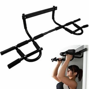 A Barra Multifuncional permite uma variedade de exercícios possibilitando trabalhar diversas áreas do corpo, como costas, abdômen, bíceps e tríceps. Proporciona o trabalho intenso de todos os músculos superiores e centrais. Ótimo para desenvolver músculos e resistência física sem sair de casa. E muito fácil de usar: basta montar o aparelho e encaixá-lo em um batente de porta com largura padrão (largura da porta entre 60 a 80 cm e largura do marco até 18cm) ou no chão, como apoio em abdominais e outros exercícios. Sua estrutura é em aço com protetores em neoprene, material resistente que suporta até 130 kg e evita calosidades nas mãos.