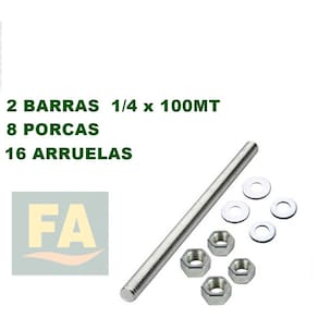 Kit 02 Barra roscada zincada 1/2, 1 metro + 8 arruelas e 8 porcas.