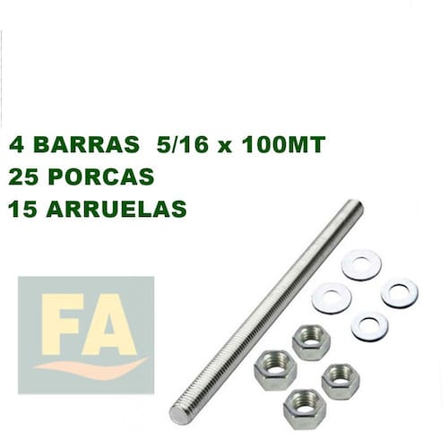 Característica: Kit 04 peça de Barra roscada zincada 5/16" 1 metro + 16 arruelas e 16 porcas.