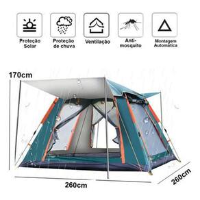 Com medidas de 260x260x170cm, essa barraca pode acomodar confortavelmente de 4 a 5 pessoas para dormir e até 6 a 7 pessoas para ficar sentadas. Além disso, ela possui 2 portas e 2 janelas, proporcionando uma ótima ventilação. O teto conta com uma tela para evitar a entrada de insetos.