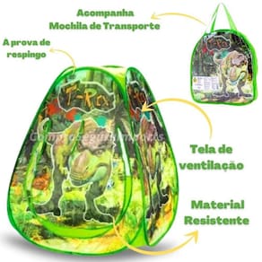 Leve com você brinque onde quiser Um espaço exclusivo para as crianças brincarem e soltarem a imaginação Prática e moderna, a barraca portátil dinossauro t-rex, conta com sistema pop up, ou seja, é só abrir e... Pronto A barraca estará montada.