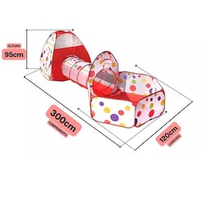 Barraca Cabana Toca Túnel Infantil 3x1 Piscina De Bolinhas- Diversão garantida com esta toca colorida 03 em 01- São duas tocas e um túnel para você passar de uma para outra.- A Toca é o brinquedo ideal para fazer a alegria da garotada, a toda hora.- Ótima para brinquedotecas, quartos de brinquedo, garagem, festas infantis, etc.ESPECIFICAÇÕES:Marcas: POP BrinquedosModelo: TOY23005-AZMontagem necessária: SimTipo s de material: Plástico, Poliéster, Fibras TêxteisItens Inclusos: Sacola para armazenagemIdade recomendada: 3 anos e acimaForma: Túnel Infantil 3x1 Piscina De BolinhasCor: VermelhoCertificação: INMETRODimensões:Embalagem:49 x 8 x 49 peso: 1 kgMontado:- Toca triangular C x A - 90 x 91 cm;- Túnel C x D - 100 x 46,5 cm;- Toca quadrada C x A - 83 x 86 cmNÃO ACOMPANHA BOLINHASGarantia de 90 diasHomologação Inmetro: CE-BRI/ICEPEX-I 02597-42-1