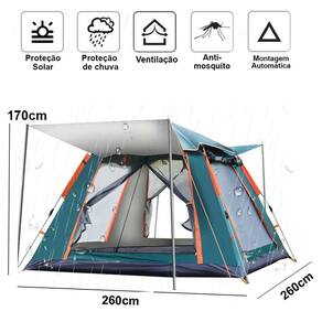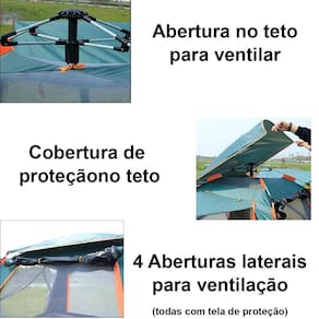 Características: Cor: Verde - Automática montagem em 1 minuto - Medidas: 260x260x170cm - Pode acomodar sentado 6-7 pessoas, dormindo confortavelmente 4-5. - 2 Portas e 2 Janelas além de tela no teto para ventilar. - Bolso interno porta treco -impermeável e protetor solar: proteção solar, proteção UV, tecido impermeável, sem medo de chuva.