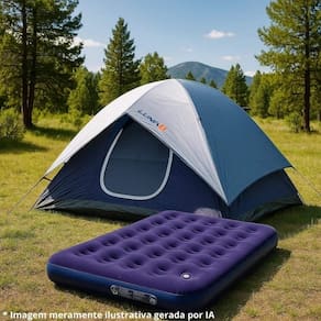 No dia a dia do camping, cada minuto conta. Por isso, este conjunto privilegia a rapidez de montagem, a organização do pernoite e a portabilidade. A barraca, com 2,65 kg, facilita o transporte até o local de montagem. O colchão, por sua vez, é uma solução versátil: serve como cama extra em casa, apoio para visitas, lazer das crianças e, claro, como base confortável dentro da barraca. Compactos quando guardados, ambos ocupam pouco espaço no porta-malas.