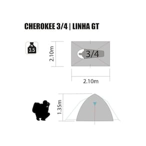 A barraca Cherokee GT 3/4, da NTK possui estacas extra dimensionadas e tensionadores cor de laranja para melhorar a ancoragem da barraca, elásticos estabilizadores extra resistentes, bolso interno transparente para organização e fácil identificação de objetos, dormitório respirável com tela ultra fina para máximo conforto e ventilação, varetas NAND-FIBER extra dimensionadas em fibra de vidro virgem para maior flexibilidade e resistência.
