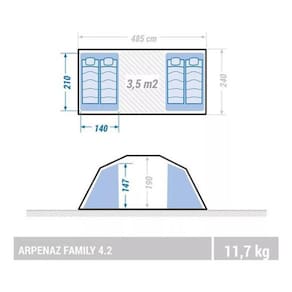 A Barraca de Camping Quechua 4.2 Arpenaz para 4 Pessoas e uma excelente opcao para familias ou grupos que buscam conforto, privacidade e resistencia durante acampamentos. Com um design espacoso e pratico, esta barraca possui 2 quartos separados, cada um acomodando ate dois colchoes de 70 cm de largura, proporcionando o maximo de privacidade e conveniencia para ate 4 pessoas. A barraca conta com uma ampla sala central de 3,5 m2 e altura de 1,90 m, onde e possivel se movimentar com facilidade e organizar seus pertences nos bolsos internos. Para enfrentar condicoes climaticas adversas, ela oferece excelente impermeabilidade, com protecao testada em laboratorio para resistir a chuvas tropicais intensas 200 mm/h . A ventilacao e outro destaque, com teto duplo ventilado na sala e alcapoes para circulacao de ar, minimizando a condensacao e mantendo o ambiente sempre fresco. Montar e desmontar a barraca e facil, gracas as varetas coloridas, e sua estrutura reforcada com varetas de fibra de vidro e estacas de aco garante resistencia a ventos de ate 50 km/h. Esta barraca e ideal para uso ocasional ao ar livre, com uma vida util prolongada se cuidada conforme recomendado. Resumo das Principais Caracteristicas: Capacidade: 4 pessoas 2 quartos Dimensoes dos quartos: 140 x 210 cm cada Sala central: 3,5 m2 com altura de 1,90 m Impermeabilidade: Resiste a 200 mm/h chuva tropical Ventilacao: Teto duplo ventilado e alcapoes de ventilacao elevados Resistencia ao vento: Ate 50 km/h Estrutura: Varetas de fibra de vidro e estacas de aco Peso: 11,7 kg Dimensoes da bolsa: 60 x 26 x 26 cm 40 litros : 3 anos