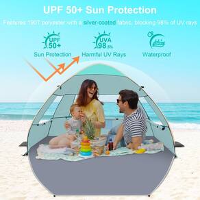 - Proteção solar FPS 50+: feita de tecido revestido de prata 190T de alta qualidade, esta barraca de para-sol bloqueia 98% dos raios UV prejudiciais, garantindo proteção confiável FPS 50+. Fique seguro sob o sol enquanto desfruta de um retiro fresco e sombreado