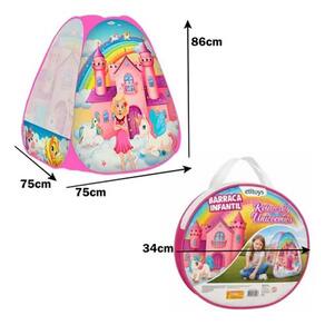 As melhores lembranças que a gente pode ter certamente estão associados com momentos de diversão e descontração, seja tirando um lazer, jogando, assistindo, praticando esportes ou qualquer outra atividade que gostamos. Na infância isso é muito mais frequente, sendo uma prática muito importante para o desenvolvimento infantil. Tendo em vista que momentos de diversão são importantes para o desenvolvimento das crianças, que tal estimular a imaginação dos pequenos levando para ele um pouco da época feudal? A Barraca Infantil Triangular Unicórnios é perfeita para os momentos de diversão da criançada. Com estampa descontraída, ela traz um sentimento delicado para as brincadeiras. Além disso, seu design compacto possibilita com que lugares se transformem em um verdadeiro reino. Ideia: Tente elaborar dinâmicas para que a sua criança se divirta, incentivando a imaginação e a interatividade.BARRACA INFANTIL TRIANGULAR UNICÓRNIOSDimensões da Peça: 86 x 75 x 75cmTipo de Embalagem: ShrinkMaterial: PoliésterMarca: EtitoysCor: Rosa com estampas do reino dos unicórniosContém: 1 unidadeAdvertência/Atenção:Não recomendável para crianças menores de 03 (Três) anos por conter parte(s) pequena(s) que pode(m) ser engolida(s) ou aspirada(s)Para evitar o perigo de asfixia, manter esta embalagem longe do alcance das criançasEsta embalagem contém fechos metálicos, retirar antes de entregar o brinquedo a criançaIndicação:Este produto é indicado para crianças a partir de 36 mesesCertificado e Autorização para uso do Selo de Identificação e Conformidade na norma brasileira.CERTIFICADO: CE- BRI/INNAC - 02379-08ANM 300/2002OCP 0061