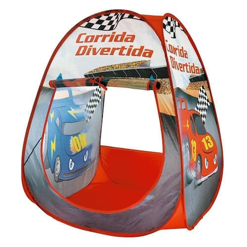 Barraca Infantil Leve Portátil Piquenique Corrida Divertida - A Barraca vem numa estampa exclusiva de carros de corrida, a criança vai adorar brincar de fazer acampamento. São flexíveis e dobradas ficam guardadas sem fazer volume na sacola plástica que a acompanha.