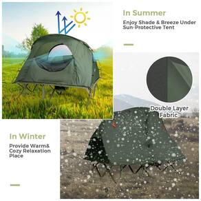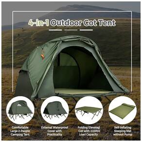 Adequado para verão e inverno Graças às janelas de malha ventiladas em todos os lados da barraca, você pode aproveitar a brisa ao relaxar na barraca durante a tarde nebulosa. Além disso, há uma cobertura externa extra para criar uma proteção dupla para o calor. Assim você pode dormir em um lugar aconchegante ao ar livre sem suportar o frio. Tapete de dormir auto inflável Desaperte o bico de gás no sentido anti horário, este colchão cheio de ar será inflado automaticamente em 5 8 minutos, economizando seu tempo e energia. E o tapete é projetado com travesseiro, não há necessidade de levar muita roupa de cama, proporcionando uma experiência de sono confortável. Berço Elevado com Estrutura Resistente Este berço para 2 pessoas com estrutura de metal resistente oferece excelente durabilidade e robustez, podendo carregar até 660 lbs. E o berço elevado oferece um local sem se preocupar com a invasão de água barrenta e problemas de insetos em atividades ao ar livre. Tiras de fixação extras e estacas de metal aumentam a resistência e a estabilidade do vento Marca: Não Informado