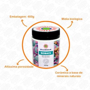 A Barrak BioBacs foi elaborada para inovar na capacidade de filtragem biológica. Trabalho entre a Barrak e a empresa Rudez. Midia inovadora tanto no formato quanto na forma de filtragem. Seu formato cilíndrico, com pequenas vias laterais reduzem a velocidade da água ao redor da peça. Isso cria zonas específicas para a