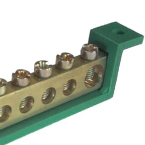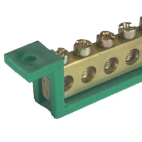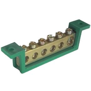 Barramento Terra 6 Terminais Verde Fixo 70mm - Sbt6 - Steck Barramento Terra 6 Terminais Verde Fixo 70mm - SBT6 - STECK Descrição: Barramento Neutro: distribuição dos condutores Neutro de forma segura. Identificados pela cor Azul nos suportes de fixação do barramento ou símbolo N (neutro). Modelos para fixação nas linhas de quadros e Modelos para fixação em trilho DIN.
