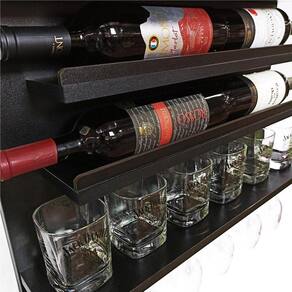 Barzinho Adega Parede - Boteco Terapia - 60 x 51 Preto Impressione á todos deixando suas bebidas bem visíveis e organizadas com o nosso BARZINHO de PAREDE. O mdf na cor Nogueira torna a peça Especial, pois seus veios imitam muito bem a Madeira Natural. E pra completar, ocupando pouquíssimo espaço em seu ambiente, você consegue organizar suas bebidas e taças. Capacidade Aproximada para 6 Garrafas + 6 Copos + 6 Taças + 4 Garrafas de Vinho Feito em Mdf 15mm, o que torna a peça bem firme e visualmente muito Bonita. O desenho e a cor da chapa dão um acabamento INCRÍVEL á peça, que dessa forma é capaz de deixar qualquer ambiente muito mais Aconchegante e Agradável. Além de decorar muito bem qualquer ambiente, ele também pode ser um ÓTIMO PRESENTE. Principais Características: Feito 100% em Mdf 15mm Bilaminado Capacidade Aproximada para 6 Garrafas + 6 Copos + 6 Taças + 4 Garrafas de Vinho Dimensões: 60cm de largura x 51cm de altura x 13cm de profundidade Acompanha parafusos e buchas para fixação. Indicações de Uso: Pubs Home Bar Varandas e Sacadas com temática Gourmet Cozinhas Salas em Geral Churrasqueiras Obs: Imagem Meramente Ilustrativa, Copos, Garrafas e Demais Acessórios Não Acompanham o Produto