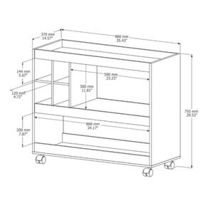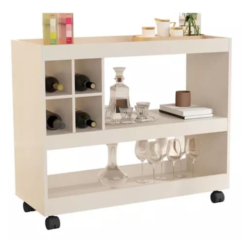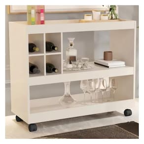 Barzinho Aparador Adega Tennessee Pérola **Características:**- Estrutura fabricada em MDP (Medium Density Particleboard) com espessuras de 12 mm e 15 mm, proporcionando resistência e durabilidade.- Equipado com 04 rodízios de plástico, garantindo fácil movimentação e praticidade no transporte do produto.- Inclui uma adega vertical com capacidade para até 04 garrafas, ideal para armazenar bebidas de forma organizada.- A adega é projetada para ser montada em ambos os lados, oferecendo flexibilidade na escolha de seu posicionamento.- Design funcional e moderno, com acabamentos que se adaptam a diferentes ambientes.**Dimensões:**- **Altura:** 750 mm (75 cm)- **Largura:** 900 mm (90 cm)- **Profundidade:** 370 mm (37 cm)**Instruções de Montagem:**- A montagem do produto é de responsabilidade do comprador.- Apesar de ser um processo simples, o produto acompanha um manual de montagem detalhado para facilitar a instalação.- Para garantir a melhor montagem, recomendamos que o serviço seja realizado por um profissional ou empresa especializada.**Observação:**- As imagens do produto são meramente ilustrativas, podendo haver variações no acabamento ou na tonalidade das cores. Marca: Não Informado