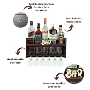 - Medida Total do Barzinho: 49 cm de comprimento x 26 cm de altura x 12 cm de profundidade - Espaço para copos : 46 cm de comprimento x 11,5 cm de altura x 11,5 de profundidade - Capacidade de taças : 6 taças -Capacidade de copos: 5 copos