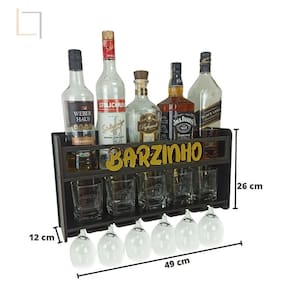 - medida total do barzinho: 49 cm de comprimento x 26 cm de altura x 12 cm de profundidade - espaço para copos : 46 cm de comprimento x 11,5 cm de altura x 11,5 de profundidade - capacidade de taças : 6 taças -capacidade de copos: 5 copos