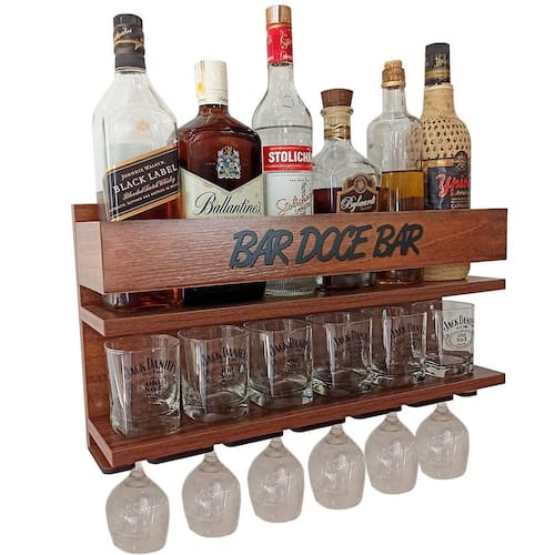 Principais Características: Feito 100% em MDF 15mm Bilaminado Capacidade Aproximada para 6 Garrafas + 6 Copos + 6 Taças Dimensões: 54cm de largura x 28cm de altura x 13cm de profundidade Acompanha parafusos e buchas para fixação. Marca: Não Informado
