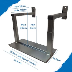 - Base aérea reforçada para motores deslizantes - Compatível com todas as marcas de motor - Eleva o motor do solo protegendo contra umidade - Facilita manutenção e instalação - Estrutura robusta em aço com acabamento resistente - Compatível com diversos modelos de motor