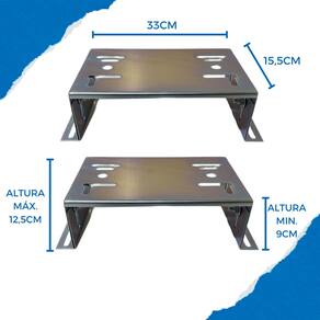 Ficha Técnica: Marca: JVG Metalúrgica Tipo: Base Regulável Para Motor Aplicação: Portões Deslizantes Material: Aço Acabamento: Pintura Eletrostática Cor: Zincado Dimensão (LxC): 33cm x 15cm Altura: Regulável (min - 9cm max – 12,5cm) Peso: 1.400kg