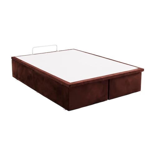 Informações Técnicas: -Estrutura Interna: Estrutura em madeira Eucalipto Domus de Reflorestamento, pistões de amortecimento. -Estrutura Externa: Camurça -Cor: Marrom -Altura: 39cm - Largura: 158cm - Comprimento: 198cm -Capacidade de suporte: Até 150kg por pessoa além do Colchão -Acompanha: 2 partes da Base Ortobom + Tampo + kit pés + Mecanismo de amortecimento + Alça de Sustentação + Junções + Chave para montagem + Manual