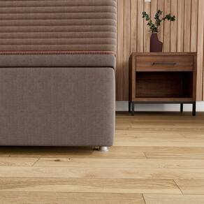 Compacta e versátil, a Base Baú Linho Marrom Solteiro oferece praticidade e organização com amplo baú interno. Possui estrutura em madeira de reflorestamento, espuma com Poliol de Soja e revestimento em linho. Inclui pés em PVC e chapa de união para medidas Solteiro.