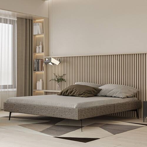 Apresentamos a Cama Bipartida Slim com um design inovador e sofisticado. Com estrutura de eucalipto, MDF e espuma D23, que proporciona resistência e maciez. Revestida em linho, tecido nobre e resistente, cama com de pés preto jateado que trás elegância e durabilidade. ESPECIFICAÇÕES DO PRODUTO Material da estrutura: Madeira de reflorestamento; Revestimento: Tecido Linho. Cama para colchões 192 x 203 Comprimento total da cama: 215cm; Largura total da cama: 199cm; Altura total da cama: 27 cm; Suporta até 300 Kgs Peso: 80kg. Não acompanha Colchão.