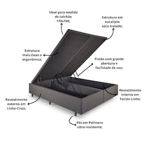 Bem-Vindos à Cama InHouse! Baú King Californiano 178 : tudo para o seu conforto! O manuseio do baú é bastante simples, não tem desculpa para não organizar, com pistões, fica ainda mais fácil, afinal, a ergonomia do baú consegue proporcionar leveza ao processo, seu design é desenvolvido para não haver qualquer dano ao produto, mesmo com utilização frequente do baú. Com revestimento em Linho Cinza, a higienização é facilitada e seu acabamento protege o baú de qualquer deformidade por impacto externo.