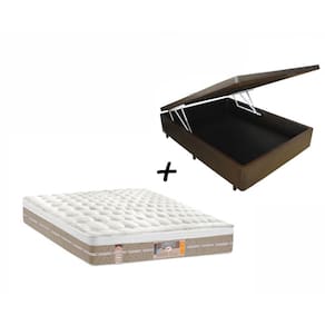Base Box Baú Casal Sintetico Marrom + Colchão Castor Casal Molas Pocket Silver Star One Face 138x188x32