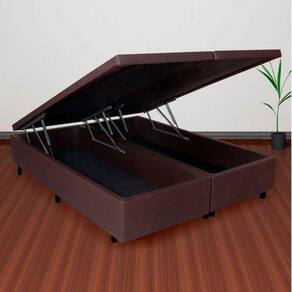 Base Box Baú King 193x203x42cm em Courino com Pistão a Gás Marrom