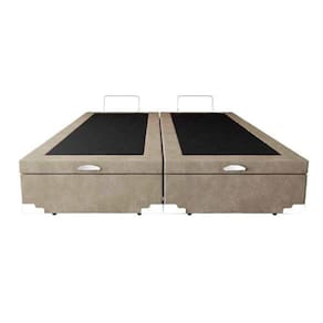 Base Box Baú King Bipartido Suede Bege 198x203x39