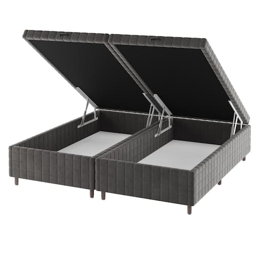 - Pode Ser Montado Invertido?: Não - Necessita de Montagem: Sim - Possui Borda de PVC nas Bordas?: Não - Pés com regulagem de altura?: Não - Possui Pés?: Sim - Categoria: Base de Cama Box - Revestimento/Acabamento: Tecido - Quantidade de Pés: 12 - Garantia (dias): 90 Dias - Recomendação de Manutenção: Utilizar pano levemente umedecido, seguido de pano seco. Não utilizar quaisquer produtos abrasivos. - Observação: Objetos decorativos que aparecem nas imagens, não acompanham o produto. A capacidade de carga considera que o peso está distribuído igualmente pela peça. As cores das imagens podem variar de acordo com as configurações do seu monitor e/ou da iluminação do ambiente onde o produto está inserido. As imagens indicam uma sugestão. - Indicação de Uso: Quarto - Sistema de Montagem: Parafusos. - Grau de Dificuldade de Montagem: Médio - Como os Móveis Chegarão em Minha Casa?: Desmontado em caixas, acompanhado de todas as peças, ferragens e manuais para montagem. - Possui Sapatas?: Não - Possui Rodízios?: Não - Espessura do Tampo (mm): 25 mm - Material do Tampo: Madeira de Eucalipto, TNT, Espuma, Matelassê - Possui Tampo?: Sim - Escala de Brilho: Semi-Brilho - Material do Puxador: Plástico - Possui Puxadores?: Sim - Possui Prateleiras?: Não - Tipo de Enchimento: Base Box revestida com tecido, tampo em TNT e matelassê com 5mm de espuma - Possui Espelho?: Não - Superfície Antideslizante: Não - Estrutura da Base: Madeira Eucalipto - Pés Removíveis: Sim - Material dos Pés/Rodízios: Madeira de Eucalipto - Modelo: King Size - Altura dos Pés: 75 - Tecido Lateral: Veludo, exceto nas cores Turkey Azul, Turkey Rose e Turkey Bege - Quantidade Pés/Rodízios: 12 - Cantoneiras: Sim - Tecido Superior: TNT - Possui Portas?: Não - Possui Gavetas?: Não - Espessura da Estrutura: 25 mm - Material da Estrutura: Eucalipto