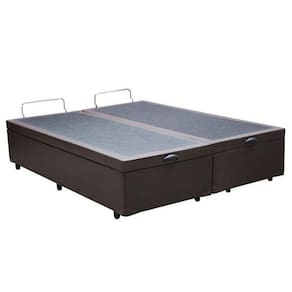 Base Box Baú Queen Bipartido Sintético Marrom 39x158x198