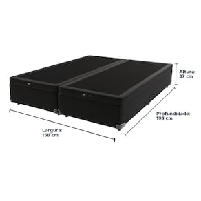 Bem-vindo(a) ao nosso catálogo! Apresentamos a você uma descrição completa sobre esse produto:A madeira utilizada na produção da Base Box é proveniente de reflorestamentos, o que garante uma matéria-prima renovável e sustentável. Além disso, a base box é revestida com um tecido de alta qualidade, que proporciona um toque suave e agradável.Base Box com Baú:Marca: KazaMix;Cor do Baú: Preto;Tamanho: Queen;Dimensões: 158x198x18cm; (largura x comprimento x altura)Revestimento da Cama: Material Sintético;Material dos pés: Madeira;Estrutura: Madeira;Abertura: Pistão a gás;Peso máximo recomendado: até 150kg de cada lado;Altura do Baú: 32cm;Altura dos pés: 5cm;Altura total: 37cm;Garantia: 03 meses;Selo Ecologicamente Correto.Os pés resistentes da base box garantem a estabilidade e segurança necessárias para um sono tranquilo e confortável. E sua capacidade de suportar até 150kg por pessoa permite que você tenha a tranquilidade de descansar sem se preocupar com a estrutura da sua cama.Invista no seu sono e experimente o conforto e a qualidade!Atenção: Antes de finalizar sua compra, certifique-se de que as dimensões do produto sejam adequadas para serem transportadas pelos elevadores, portas, escadas e corredores de sua residência. Ressaltamos que não nos responsabilizamos pelo transporte do produto por meios específicos, como escadas, guinchos ou içamentos. Marca: Kaza Mix