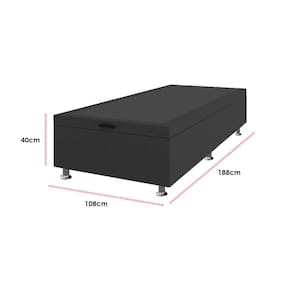 Base Box Baú Solteirão Corino 40x108x188 Framar Não é uma sensação ótima saber que o seu quarto está organizado e com um visual impecável? Para isso você pode contar com a Base Box Baú Solteirão Corino 40x108x188 Framar! Linda, ela é fabricada com materiais de ótima qualidade e excelente resistência. Perfeita para guardar as roupas de cama como edredom e cobertores.\nMEDIDAS\nAltura 40cm\nLargura 108cm\nComprimento 188cm\nCARACTERÍSTICAS\nFabricante Framar\nModelo Base Box Baú Solteirão Corino\nGarantia 3 meses\nTipo de produto Base Box Baú Solteirão\nAmbiente Quarto\nEstrutura Madeira Eucalipto\nRevestimento Corino\nPossui Pistão à Gás Sim\nQuantidade de Pés 06\nINFORMAÇÕES IMPORTANTES\nObjetos decorativos que porventura apareçam na foto, não acompanham o produto. Não nos responsabilizamos pela montagem/instalação dos produtos.\nMontagens, desmontagens e instalações são responsabilidades do cliente. Indicamos que contrate uma empresa de montagem ou um montador de sua confiança.\nAlém disso, favor verificar se os pés e acessórios estão dentro do forro inferior do produto. Em suma, todas as informações divulgadas sobre o produto são de responsabilidade do Fabricante.\nAs cores do produto podem variar de acordo com o seu monitor, a iluminação do ambiente em que você está e até mesmo a sua percepção visual. Além da cor, pequenos detalhes e acabamentos podem não ficar evidentes na foto, por isso as imagens são meramente ilustrativas
