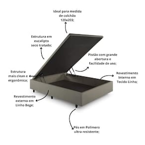 Laterais e tampa com revestimento em Linho Bege que além de lindo é de fácil higienização;