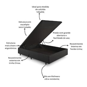 Base Box Baú Viúva 120x203x42 cm Linho Cinza