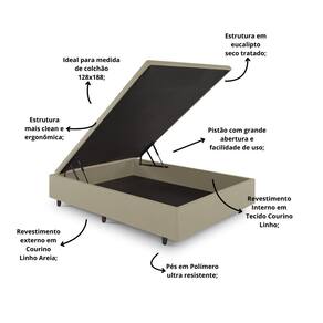 Mantenha seu quarto sempre organizado com o Baú Viúva 128. Com uma capacidade de 497 litros, ele é ideal para armazenar roupas de cama, edredons e outros itens essenciais. Seu acabamento sofisticado em Courino Linho Areia facilita a higienização, garantindo praticidade no dia a dia.