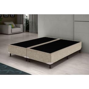 Base Box Casal Bipartido Suede Bege - 30x138x188