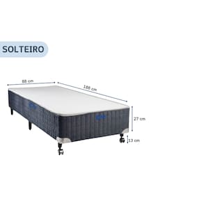 Base Box Castor Silver Star Air Solteiro 88x188 A Base Box Castor Silver Star Air foi desenvolvida para oferecer firmeza e suporte adequado ao colchão. Produzida com estrutura em madeira de Pinus e Eucatex, proporciona estabilidade e resistência no uso diário. O revestimento é em tecido suede cinza matelassado, com acabamento que valoriza o ambiente e combina com diferentes estilos de decoração. Os pés em madeira fixo e com rodízio facilitam a movimentação e dão praticidade na utilização. Produto de fácil montagem: não necessita montagem complexa, apenas encaixe dos pés. Características Gerais Marca: Castor Modelo: Silver Star Air Tamanho: Solteiro Largura: 88 cm Comprimento: 188 cm Suporta até: 150 kg Altura dos pés: 13 cm Altura total com pés: 40 cm Altura sem pés: 27 cm Pés: Madeira Fixos e com rodízio Estrutura: Madeira de Pinus e Eucatex (espessura 3 cm) Revestimento: Tecido suede cinza matelassado Necessita montagem: Não (apenas encaixe dos pés) Observações: Colchão não incluso. Antes da compra, verifique as dimensões do produto e certifique-se de que ele passa por portas, corredores e elevadores do local de entrega.