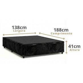A Cama Box Bau é a escolha ideal para quem busca praticidade, conforto e um toque moderno no quarto. Com estrutura resistente em madeira de pinus, ela oferece durabilidade e segurança, além de um belo acabamento em tecido reforçado e nobre, fácil de limpar. Seu sistema de abertura fácil do baú permite um aproveitamento inteligente do espaço, mantendo tudo sempre organizado. Produto Montado: Não Acompanha Cama Auxiliar: Não Altura Máxima dos Pés: 6.0000 Ambiente Principal: Quarto Bicama: Não Cantoneiras: Sim codigo_ean: 7900288350459 Cor: Preto Cor do Produto: Preto Itens Inclusos: 1 Cama Box e Kit Ferragens Linha ou Coleção: Classic Marca: Beqaa Cama Box Material da Estrutura: Madeira Pinus Necessita Montagem: Não Origem do Produto: Nacional Peso: 84.2000 Possui Baú: Sim Recomendações de Uso, Manutenção e Limpeza: Não lavar, não usar produtos quimicos, somente um pano umido. Revestimento da Base Box: Suede Tamanho: Casal Marca: Não Informado