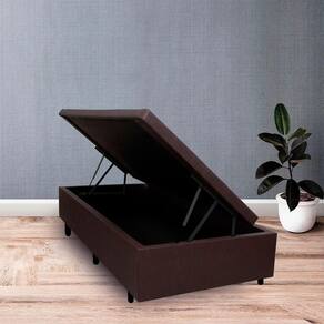 Base Box com Baú Solteiro 88x188x42 cm Courino Linho Marrom