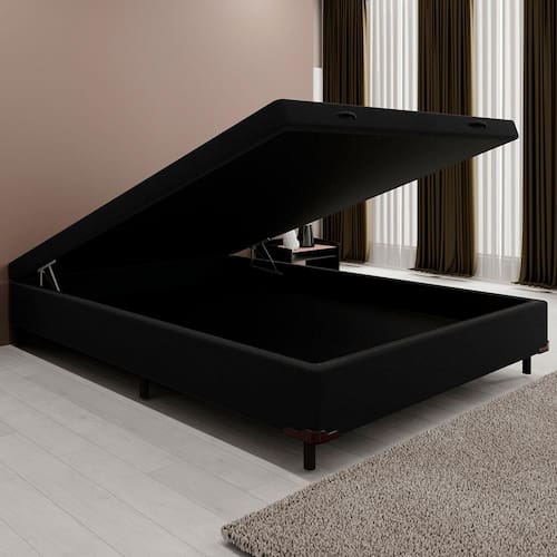 E não é só isso! Essa incrível base ainda vem com um amplo baú, excelente para organizar cobertores, edredons e travesseiros. Não é demais?!
