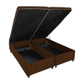 AS IMAGENS SÃO MERAMENTE ILUSTRATIVAS E PODEM SOFRER VARIAÇÕES DE COR E PEQUENOS DETALHES DE ACORDO COM O SEU MONITOR, ILUMINAÇÃO DO AMBIENTE E ATÉ MESMO A SUA PERCEPÇÃO Cama Bau Articulado Queen 1,98x1,58x0,40 Suede e Marrom